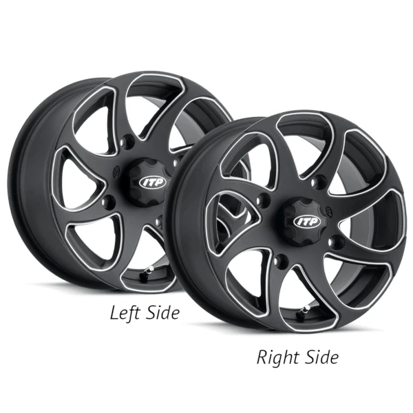 The Twister directional wheel is available in both Black with Milled Accents or Machined Face finishes and comes with the exclusive ROCK ARMOR inner wheel lip. Available in 14×7 size with multiple bolt patterns, the Twister wheel is backed by ITP’s Limited Lifetime Warranty.
