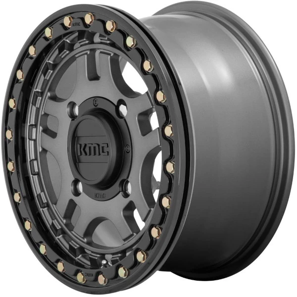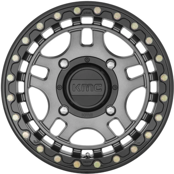 The KS240 Recon UTV wheel, by KMC Wheels, blends a split five-spoke design with beadlock performance to create a dynamic look for any UTV or side-by-side. What are beadlock wheels and why should I consider them? Beadlock wheels clamp the bead of the tire to the wheel though the use of a beadlock ring and a series of bolts. This type of wheel was originally developed for military vehicles, allowing them to run lower air pressure and handle larger torque loads. What that means for you? By airing down your tires you increase the tread patch of your tire that makes contact with the ground meaning you get more traction. The downside to airing down your tires on traditional non-beadlock wheels is that the tire can come loose from the wheel and leave you stranded. A beadlock prevents that from happening and allows you to conquer any terrain and adventure further.